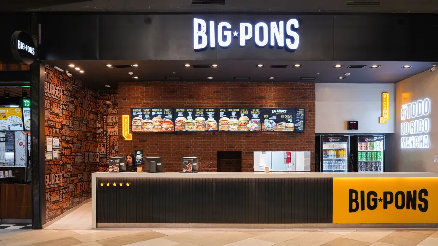 Big Pons Nivel 3 Patio de comidas Todos los días 10:00 a 23:00 hrs American classic burgers. Cómo llegar Web Instagram Ubicación del local